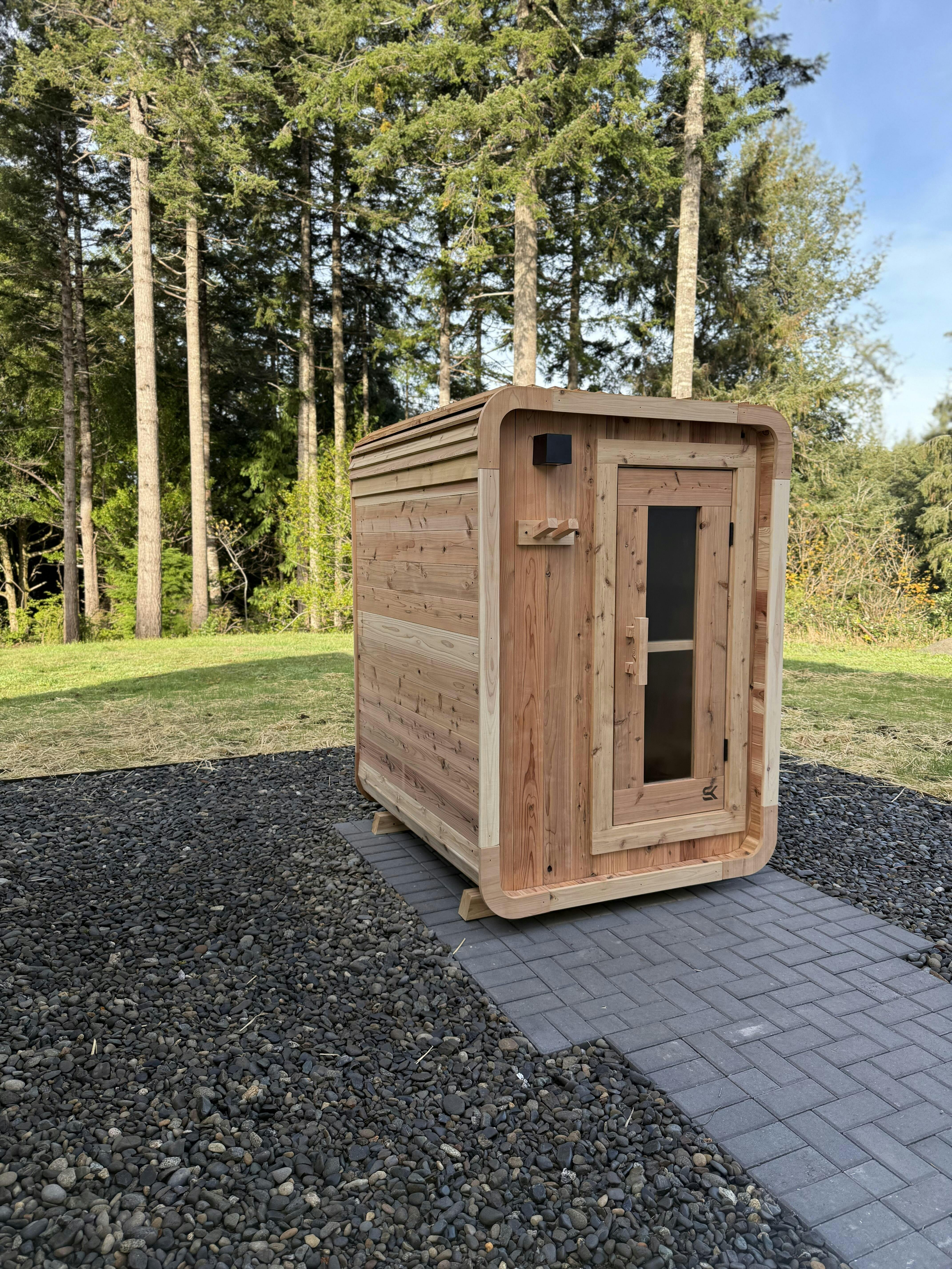The Sweat Pod is a sauna designed for efficiency. Handcrafted in East Idaho with the highest quality red cedar, this sauna brings the heat and recovery benefits of traditional saunas to your personal space. The heater included with your sauna should consistently reach temperatures of 175-230F in 30-90 minutes.